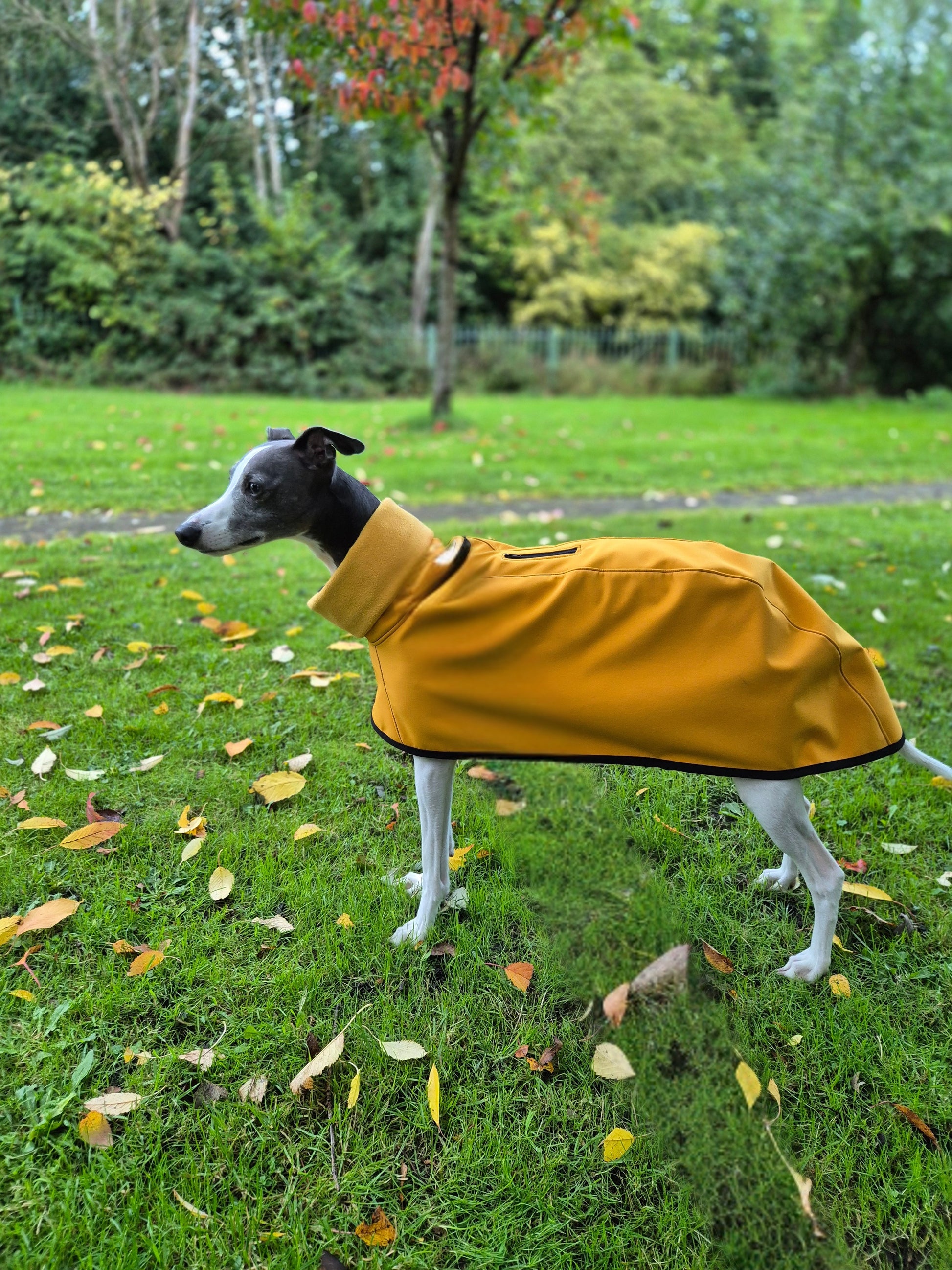 This coat is specifically designed for the shape of sighthounds. With their sloping back and tails that naturally hang downwards, this coat offers a sleek fit to their shape. It is water resistant and has two openings so you have the choice of whether you attach the lead to the collar or harness.